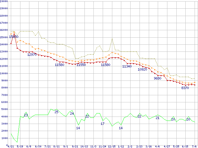 | HDT722525DLAT80 (250GB,8MB)の価格推移 | | | (2005年4月21日~2006年7月6日) |