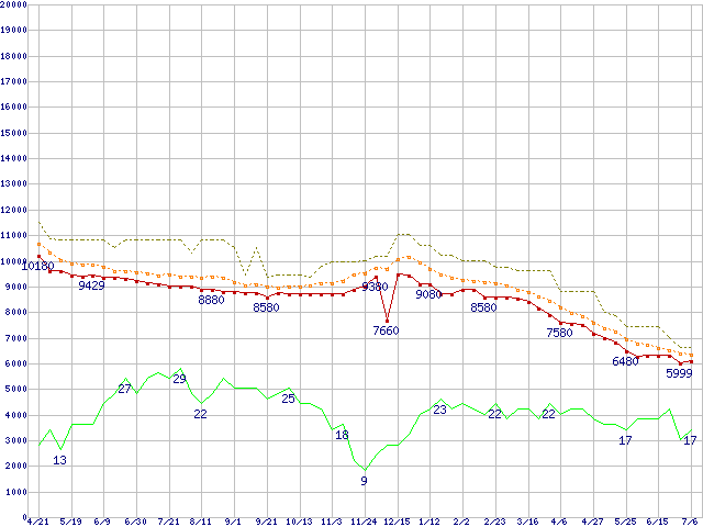 | HDT722516DLA380 (160GB,8MB)の価格推移 | | | (2005年4月21日~2006年7月6日) |