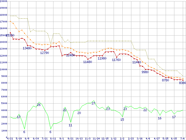 | HDT722525DLA380 (250GB,8MB)の価格推移 | | | (2005年4月21日~2006年7月6日) |