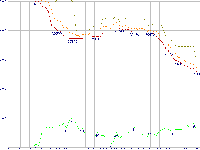| HDS725050KLA360 (500GB,16MB)の価格推移 | | | (2005年4月21日~2006年7月6日) |