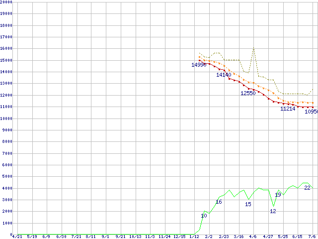 | 6V300F0 (300GB,16MB)の価格推移 | | | (2005年4月21日~2006年7月6日) |