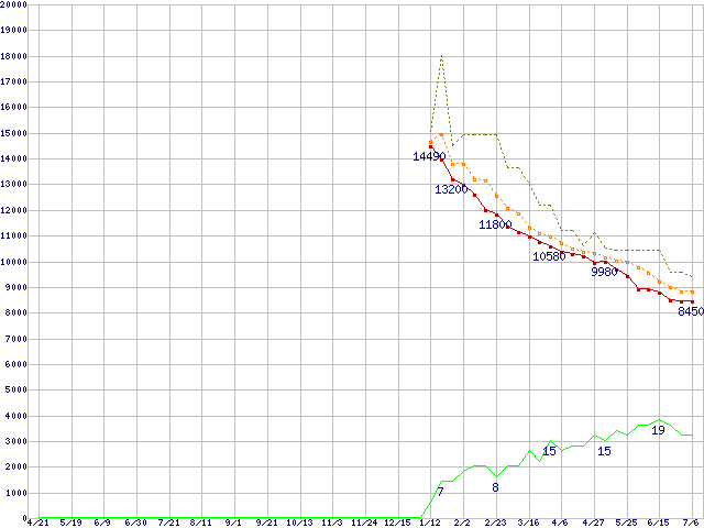 | ST3250824AS (250GB,8MB)の価格推移 | | | (2005年4月21日~2006年7月6日) |