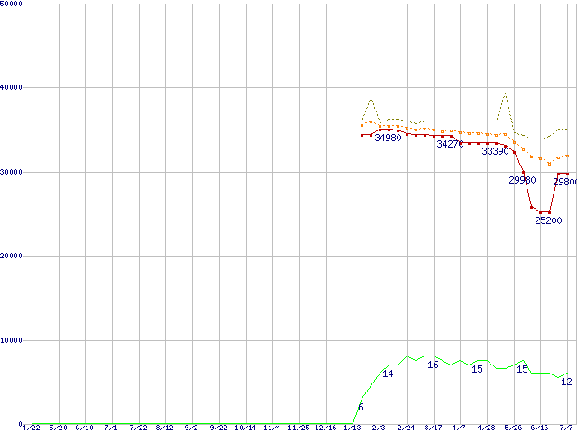 | Pentium 4 651 (3.40GHz)の価格推移 | | | (2005年4月22日~2006年7月7日) |