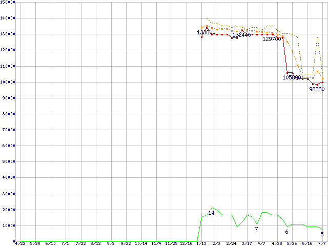 | Athlon 64 FX-60 (2.6GHz,L2 1MBx2)の価格推移 | | | (2005年4月22日~2006年7月7日) |