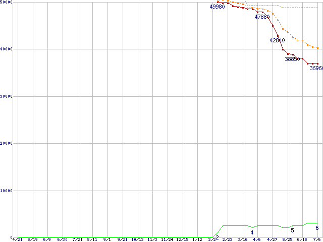 | ST3500641NS (500GB,16MB)の価格推移 | | | (2005年4月21日~2006年7月6日) |