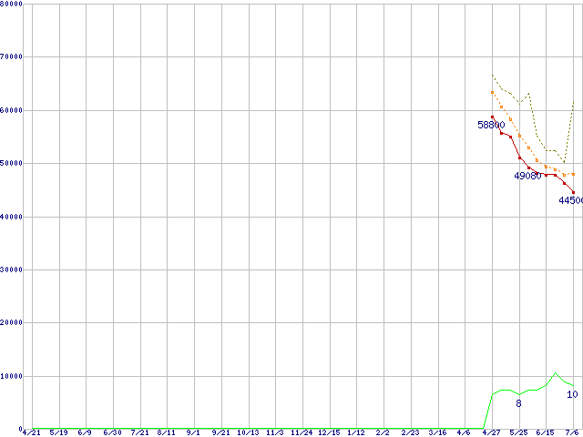 | ST3750640AS (750GB,16MB)の価格推移 | | | (2005年4月21日~2006年7月6日) |