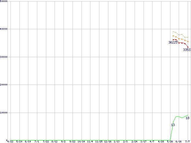 | Athlon 64 X2 3800+ (2.0GHz,L2 512KB×2)の価格推移 | | | (2005年4月22日~2006年7月7日) |