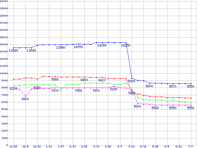 Socket 478 (FSB 533MHz,L2 256KB)の最安値推移
