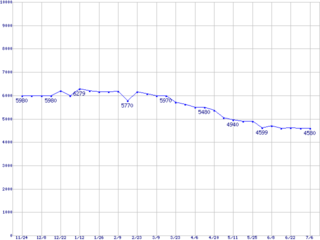 Deskstar 7K80 (7200rpm,Serial ATA II/3Gbps)の最安値推移