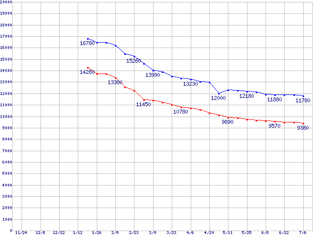 | MaXLine III (7200rpm,16MB,Serial ATA II,3Gbps)の最安値推移 | | | (2005年11月24日~2006年7月6日) |