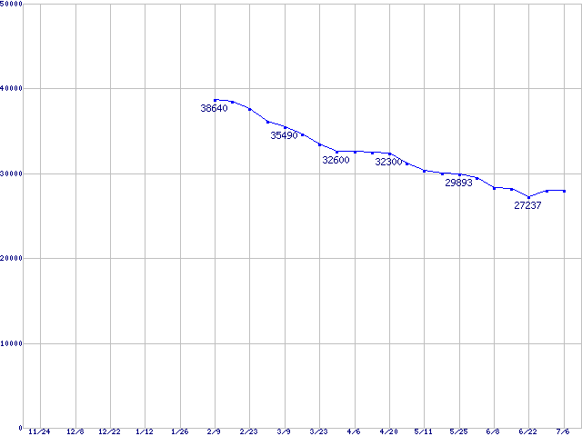 | MaXLine Pro 500 (7200rpm,16MB,Ultra ATA/133)の最安値推移 | | | (2005年11月24日~2006年7月6日) |