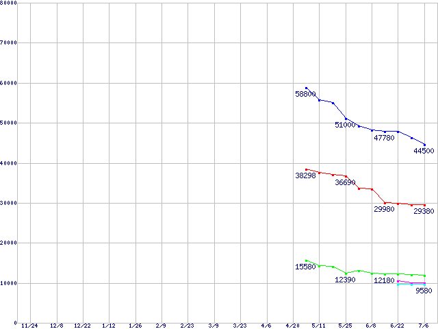 | Barracuda 7200.10 (7200rpm,Serial ATA II/3Gbps)の最安値推移 | | | (2005年11月24日~2006年7月6日) |