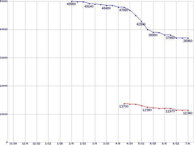 Barracuda 7200.9 (7200rpm,Serial ATA II/3Gbps)の最安値推移