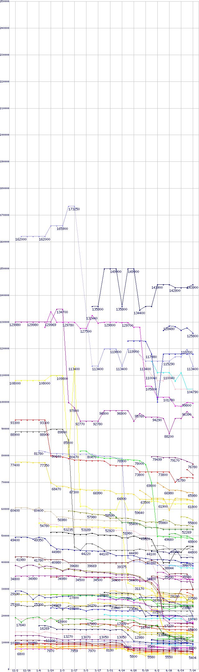 ※製品名をクリックすると個別のグラフを表示します ※点線部は販売店が確認できなかった、または調査データがないことを示します |