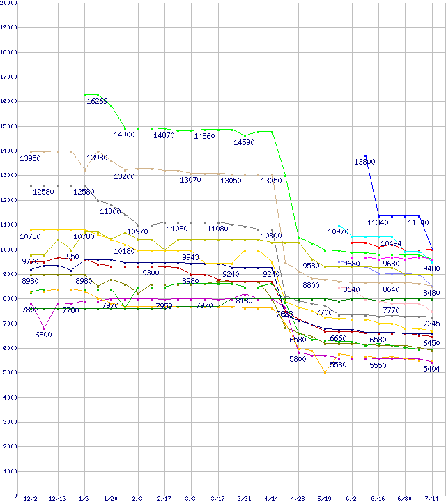 CPU主要製品の最安値推移