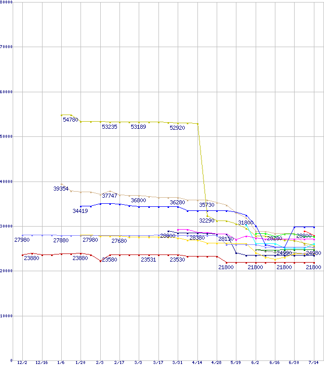 CPU主要製品(最安値1万円~2万円未満)の最安値推移