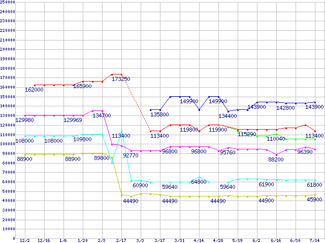 Socket 754・FSB 800MHzの最安値推移