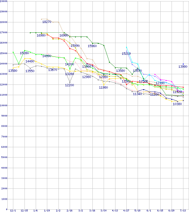 ※点線部は販売店が確認できなかった、または調査データがないことを示します