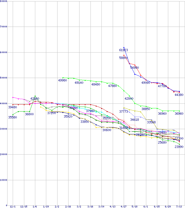 | HDD 500GB以上の最安値推移 | | | (2005年12月1日~2006年7月13日) |