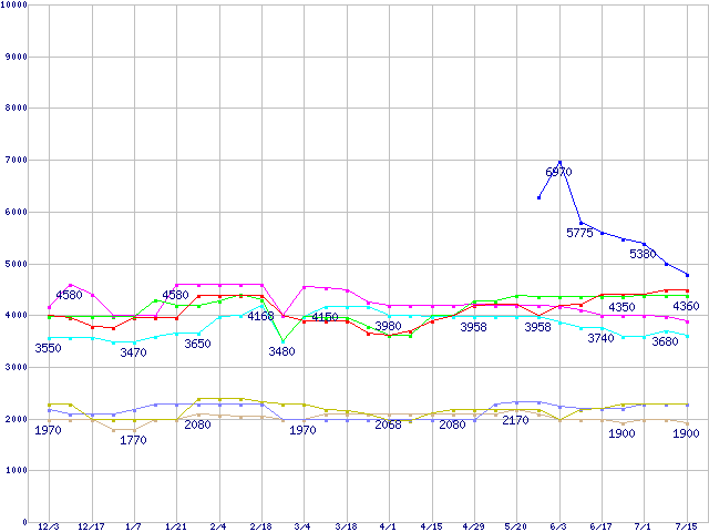 メモリ主要製品(最安値5千円~1万円未満)の最安値推移