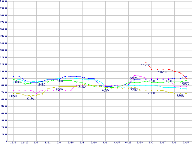 メモリ主要製品(最安値5千円~1万円未満)の最安値推移