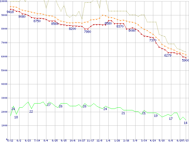 | HDT722516DLAT80 (160GB,8MB)の価格推移 | | | (2005年5月12日~2006年7月13日) |