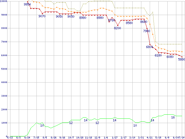 | Celeron D 331 (2.66GHz)の価格推移 | | | (2005年5月13日~2006年7月14日) |
