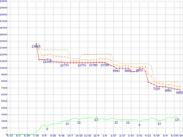 | Celeron D 341 (2.93GHz)の価格推移 | | | (2005年5月13日~2006年7月14日) |