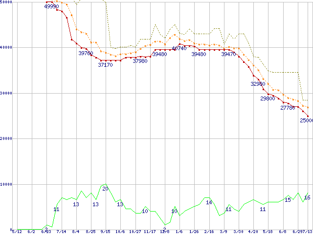 | HDS725050KLA360 (500GB,16MB)の価格推移 | | | (2005年5月12日~2006年7月13日) |