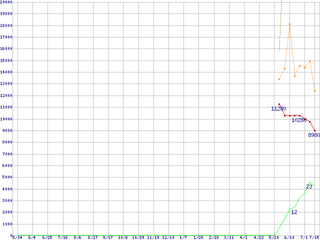 | PC2-6400 1GBの価格推移 | | | (2005年5月14日~2006年7月15日) |