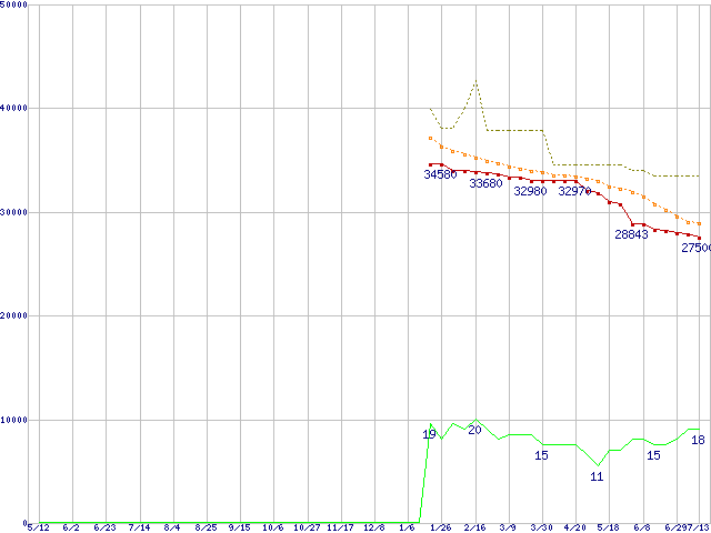 | WD1500ADFD (150.0GB)の価格推移 | | | (2005年5月12日~2006年7月13日) |