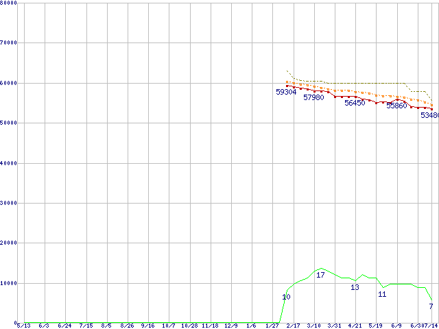 | Athlon 64 X2 4400+ (2.2GHz,L2 1MB×2,Socket 939,TDP89W)の価格推移 | | | (2005年5月13日~2006年7月14日) |