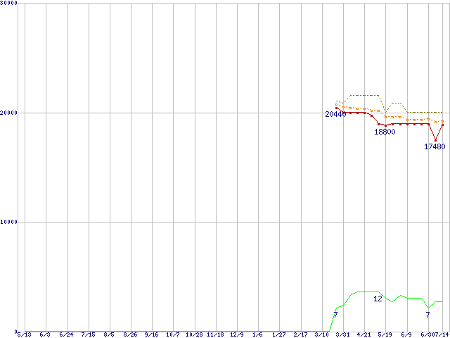 | Turion 64 MT-32 (1.8GHz,512KB)の価格推移 | | | (2005年5月13日~2006年7月14日) |