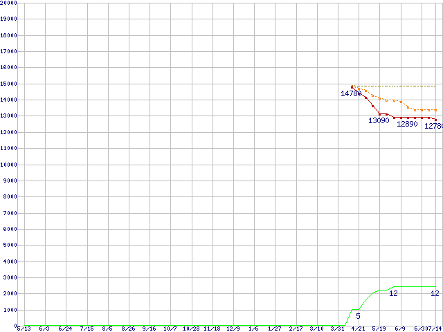 | Celeron M 420 (1.6GHz)の価格推移 | | | (2005年5月13日~2006年7月14日) |
