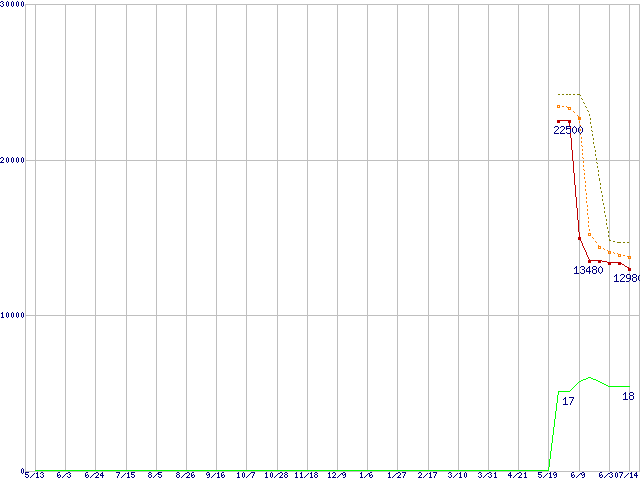 | Athlon 64 3500+ (2.2GHz,L2 512KB)の価格推移 | | | (2005年5月13日~2006年7月14日) |