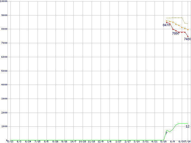 | Sempron 2800+ (1.6GHz,L2 128KB)の価格推移 | | | (2005年5月13日~2006年7月14日) |
