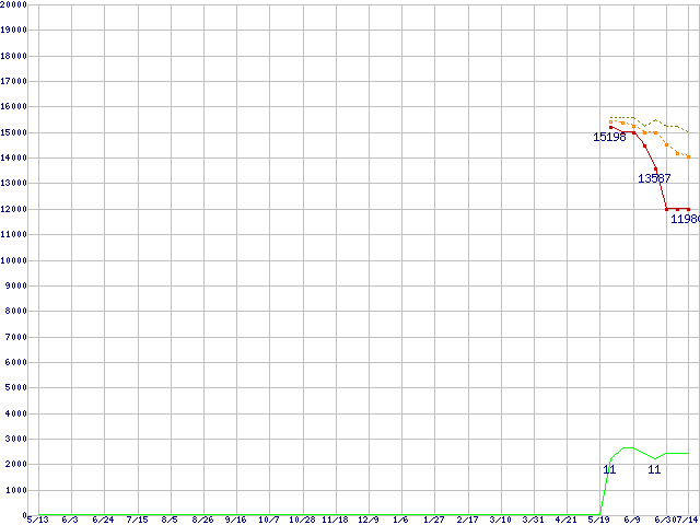 | Sempron 3600+ (2.0GHz,L2 256KB)の価格推移 | | | (2005年5月13日~2006年7月14日) |