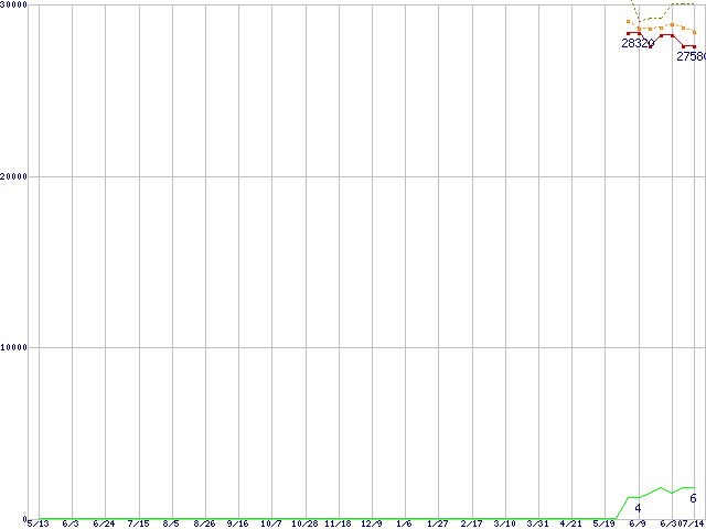 | Turion 64 X2 TL-52 (1.6GHz,512KB×2)の価格推移 | | | (2005年5月13日~2006年7月14日) |