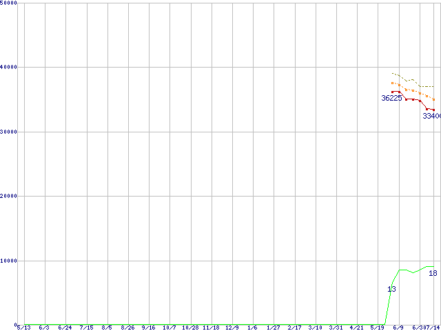 | Athlon 64 X2 3800+ (2.0GHz,L2 512KB×2)の価格推移 | | | (2005年5月13日~2006年7月14日) |