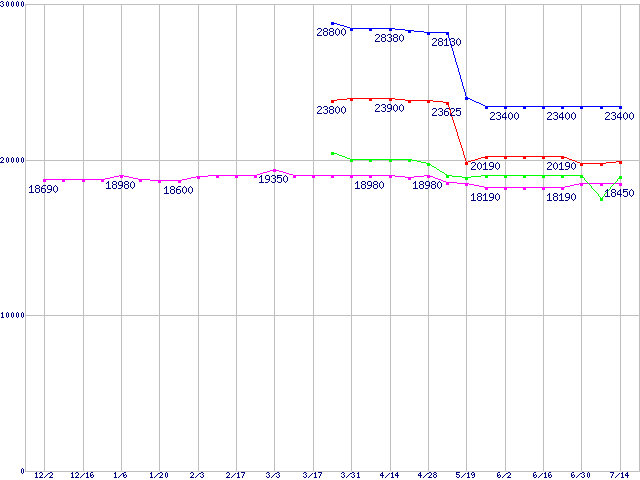 Socket AM2 (FSB 1000MHz,Dual Core L2 1MB)の最安値推移