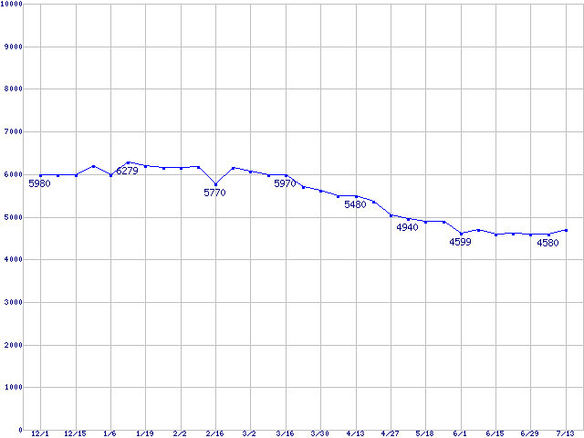 Deskstar 7K80 (7200rpm,Serial ATA II/3Gbps)の最安値推移