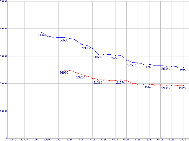 | DiamondMax 11 (7200rpm,16MB,Serial ATA II,3Gbps)の最安値推移 | | | (2005年12月1日~2006年7月13日) |