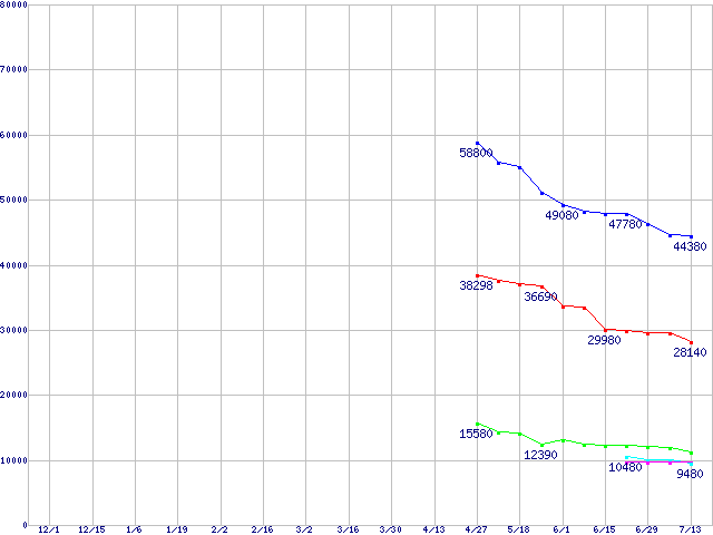 | Barracuda 7200.10 (7200rpm,Serial ATA II/3Gbps)の最安値推移 | | | (2005年12月1日~2006年7月13日) |