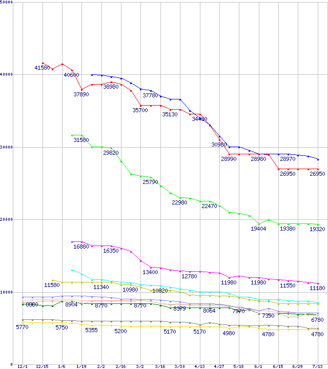 | Barracuda 7200.9 (7200rpm,Ultra ATA/100)の最安値推移 | | | (2005年12月1日~2006年7月13日) |