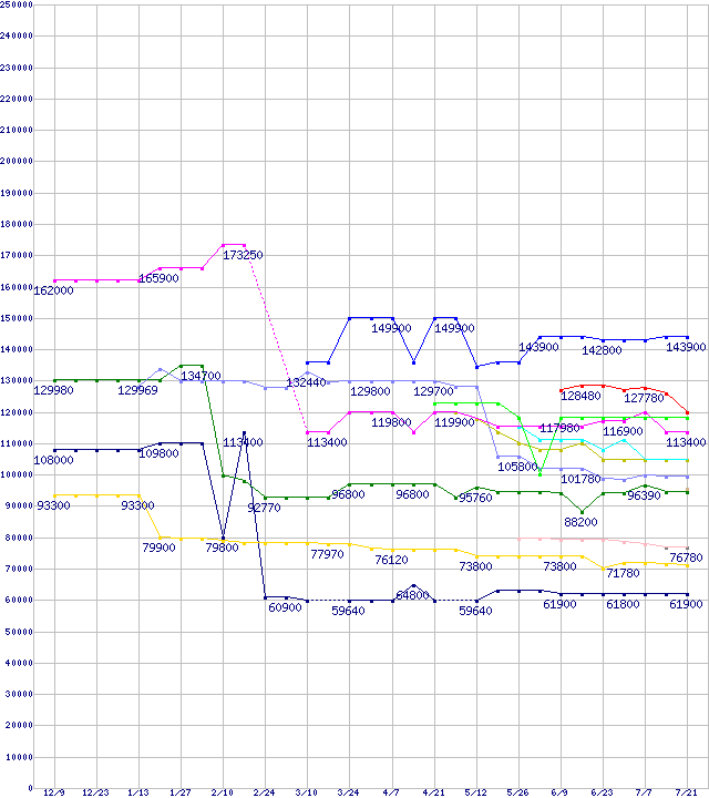 CPU主要製品(最安値6万円以上)の最安値推移