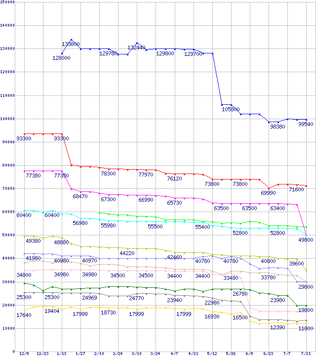 | Socket 939・FSB 1000MHzの最安値推移 | | | (2005年12月9日~2006年7月21日) |