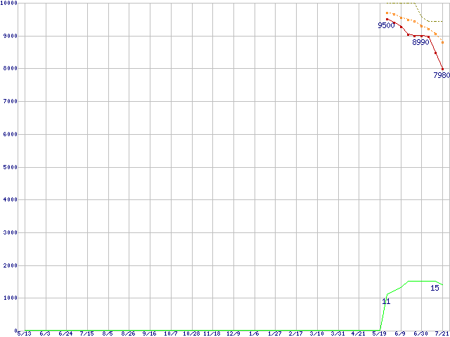 | Sempron 3000+ (1.6GHz,L2 256KB)の価格推移 | | | (2005年5月13日~2006年7月21日) |