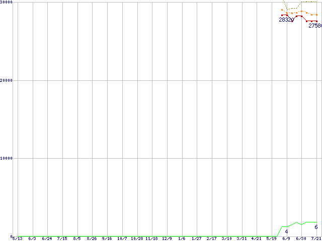 | Turion 64 X2 TL-52 (1.6GHz,512KB×2)の価格推移 | | | (2005年5月13日~2006年7月21日) |