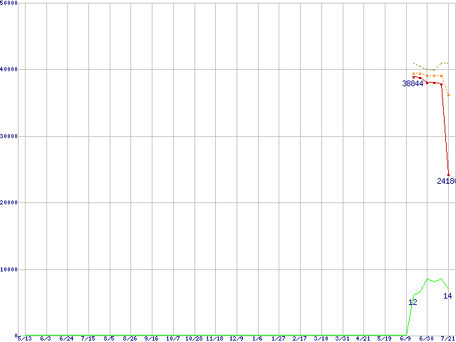 | Athlon 64 X2 3800+ (2.0GHz,L2 512KB×2,TDP65W)の価格推移 | | | (2005年5月13日~2006年7月21日) |
