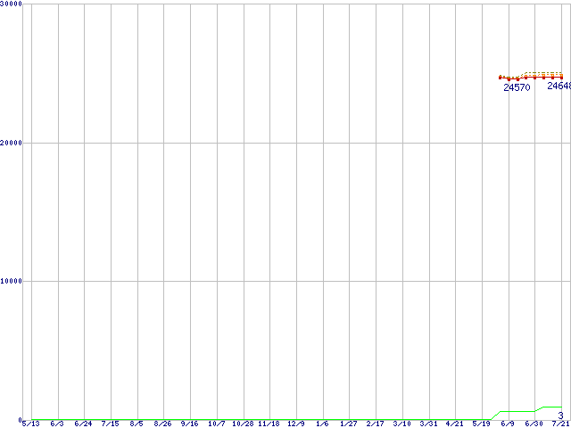 ※このグラフは過去のデータも税率5%相当に調整した税込み相当額のグラフです。 税率変更や、総額表示方式導入(2004年4月)の影響は除いています。 | | | ●凡例 | 最安値 (点線部は販売店未確認 または未調査) | 平均値 | 最高値 | ショップ数 |